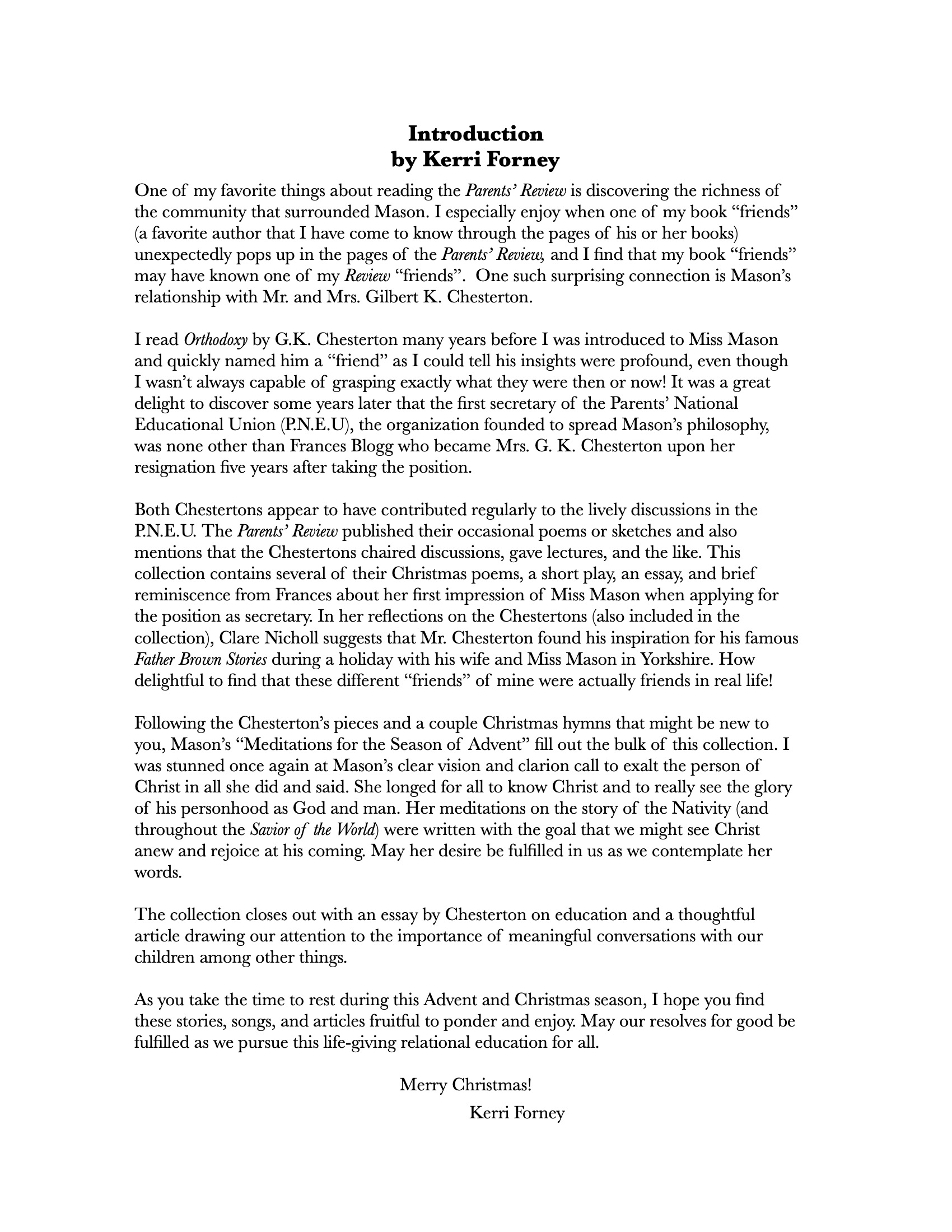 This collection features a number of Christmas pieces from the Parents' Review by both G.K. and Frances Chesterton - poems, a short play, and a few hymns--along with Mason's advent meditations and a few articles on education to ponder. The collection also includes a brief reflection on Carl Larsson, the cover artist, and an introduction by Kerri Forney, one of the CMI board members. *This collection is already available to Alveary Members for FREE in the Alveary Resource bank.*