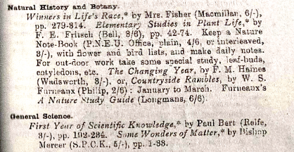 Can a textbook be living? If so, what is it that makes a book living? If not, what characteristics of a textbook disqualify it? These are some deep questions that are worth discussion, but it seems like the practical decision to avoid textbooks should be pretty straightforward when Mason says things like “Books dealing with science as with history, say, should be of a literary character, and we should probably be more scientific as a people if we scrapped all the text-books which swell publishers' lists and nearly all the chalk expended so freely on our blackboards.” But then we go to her programmes to see what books she was scheduling…
